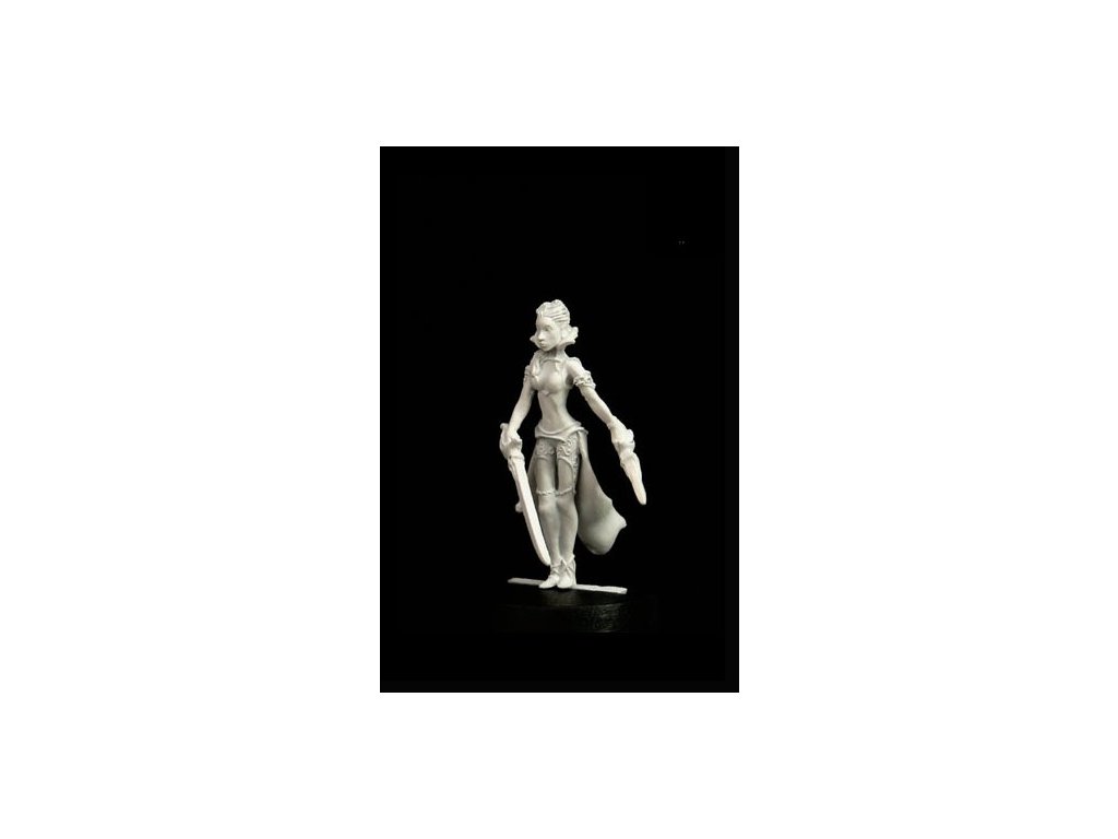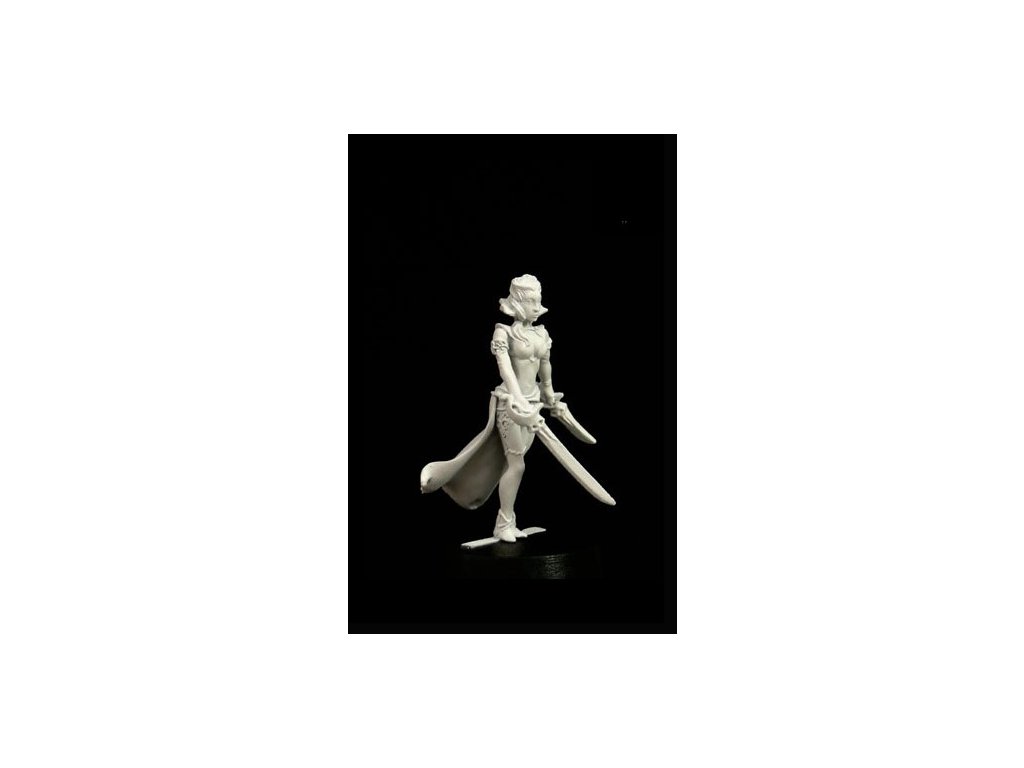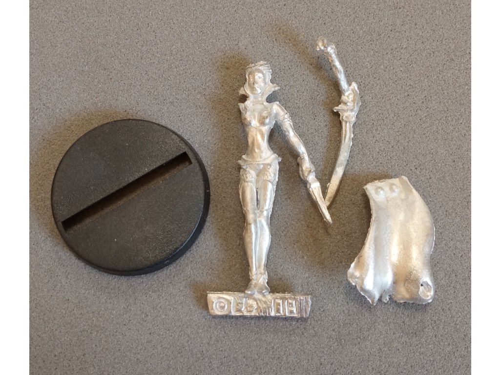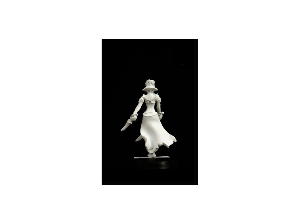 The Vampire Countess set contains one model consisting of four parts (miniature body, cloth, right hand with sabre and 25mm round base).